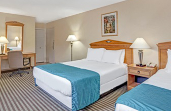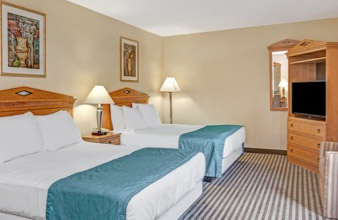 2 Double Beds Non-Smoking Room with free Wi-Fi, desk, iron and ironing board.