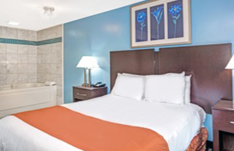 1 King Bed Non-Smoking Hot Tub Suite with free Wi-Fi, desk and easy chair.